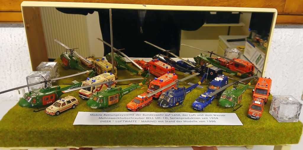 Eine schnelle Umsetzung von einer Spontanidee. Mit diesem Diorama will ich auch auf die zivile Menschenrettung der Bundeswehr hinweisen. Mit solchem Einsatzmöglichkeiten können sich die Sanitätssoldaten und Ärzte ein hohes Fachwissen aneignen. Noch heute bewährt sich diese Art der Ausbildung. Die Fahrzeuge und die Fahrzeugtechnik ist inzwischen moderner geworden.